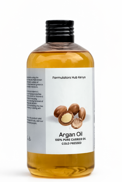 At Formulators Hub Kenya, customers who buy argan oil gain access to a nutrient-rich ingredient known for its versatility in skin and hair formulations. Extracted from the kernels of the Moroccan argan tree, our oil is carefully refined to retain its natural composition of vitamin E and essential fatty acids. When you buy argan oil from us, you receive a smooth, lightweight product ideal for moisturizers, conditioners, and facial serums that support healthy skin and hair.